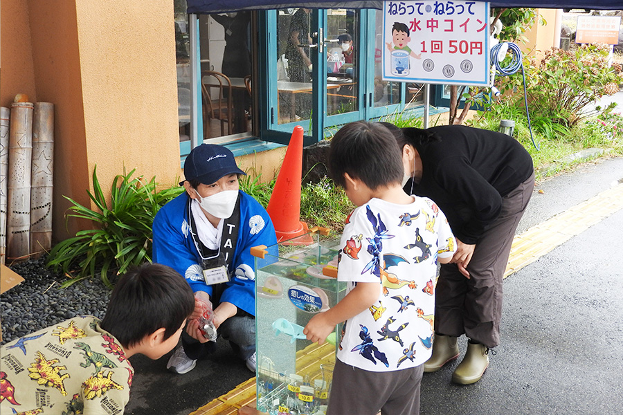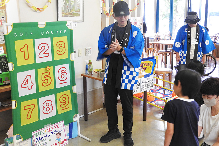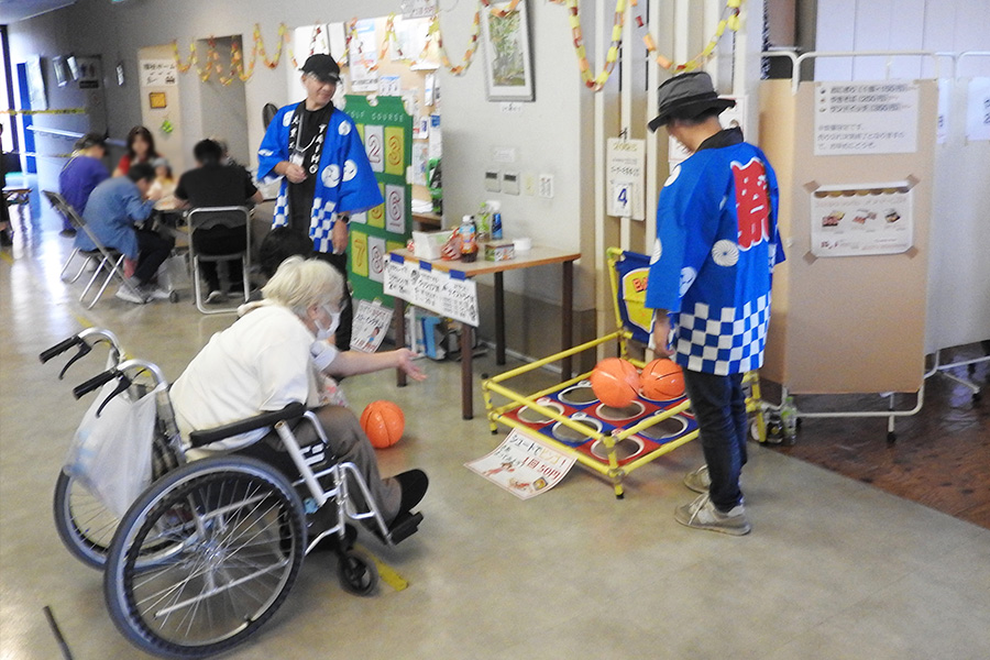 当日は「なげてならべてビンゴゲーム」や「ねらって水中コイン」など、3種目のお楽しみコーナーを出展。賞品も部長会で準備し、来場者や施設スタッフの皆さまと交流を楽しみながら、イベントを盛り上げました。延べ150名の方にご参加いただき、売上は施設へ寄付させていただきました。