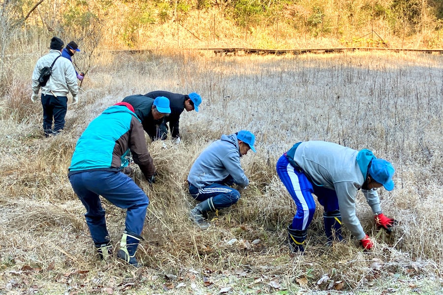1月24日(土)、ラムサール条約湿地に登録されている矢並湿地の保全活動に、当社から11名が参加しました。 当日は、豊田市環境政策課や保存会をはじめ、地域の小学生や企業など、総勢約100名が参加し、約1時間半にわたり協力して除草や刈草の撤去作業を行いました。作業後は、湿地全体が見通せるほどに整備され、参加者一同で達成感を共有しました。 当社は今後も地域の皆さまとともに、自然環境を守り育てる活動に積極的に参加してまいります。